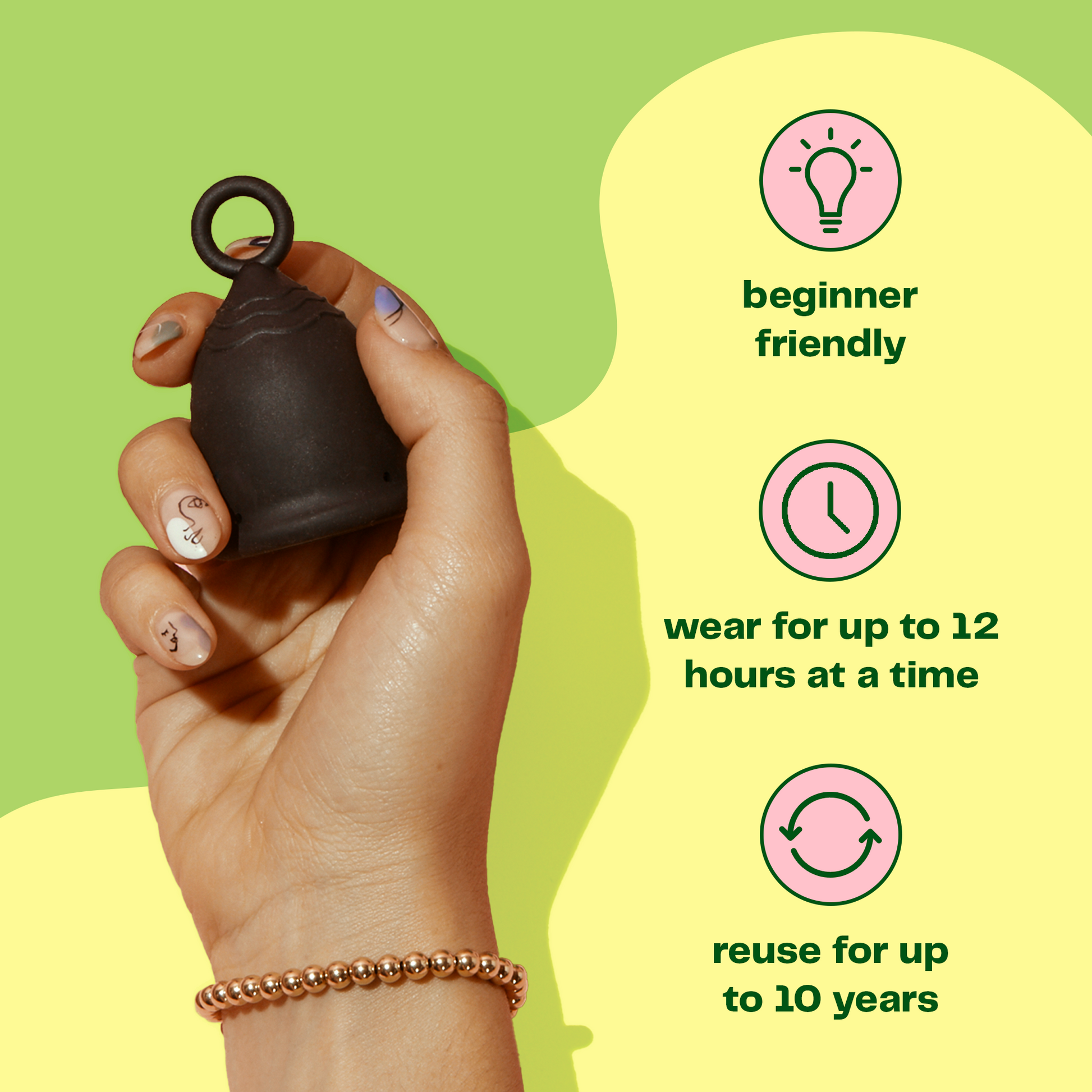 The Viv Cup can be worn for up to 12 hours at a time, holding as much as 4 super tampons, and can be reused for up to 10 years! The Viv Cup is made of 100% medical-grade silicone and is designed with beginners in mind with a ring stem for easy removal. Save money AND save the planet with our best-selling zero-waste period care option.